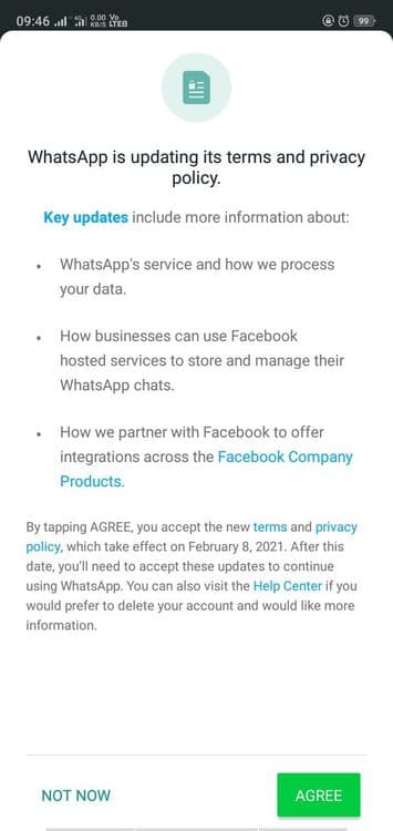 सध्या फक्त युरोपिअन युजर्स फेसबुकवर माहिती (डेटा) शेयरिंग बंद ठेऊ शकतात. पण बाकीच्या देशांत हा पर्याय उपलब्ध नाही. व्हाट्सउपच्या या अटींमुळेच सध्या अनेक जण सिग्नल, टेलिग्राम या मेसेंजर अँपकडेही वळत आहेत.