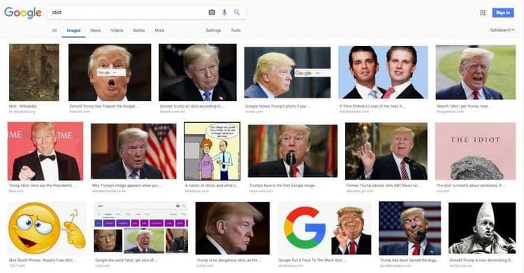 मंडळी, काही महिन्यापूर्वी हा प्रकार घडला होता. Idiot लिहिल्यावर ट्रम्प यांचा चेहरा यायचा. आताही तुम्ही सर्च केलंत, तर इमेज सेक्शन मध्ये ट्रम्प तात्याच दिसतील. याबद्दल स्पष्टीकरण मागितल्यावर सुंदर पिचाई यांनी असं म्हटलं, जेव्हा एखादा शब्द सर्च केला जातो तेव्हा त्या शब्दाला त्याच्याशी संबंधित वेब पेजेस सोबत आणि २०० सिग्नल्स सोबत तपासून पाहिलं जातं. लोकप्रियता, संबंधित असलेले वेब पेजेस, इतर व्यक्तींनी केलेला त्या शब्दाचा वापर, शिवाय सध्याच्या घडीला तो शब्द वापरला जातोय का इत्यादी गोष्टी पाहिल्या जातात. पुढे सुंदर पिचाई म्हणाले की ‘अधिकाधिक चांगल्या पद्धतीने माहिती सादर करण्यासाठी आम्ही नेहमीच प्रयत्नशील असतो.’