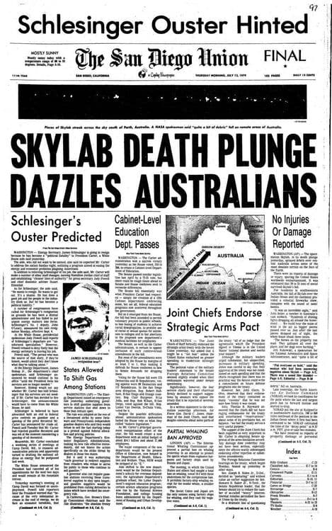सॅन फ्रान्सीस्को एक्झामीनर या पेपराने एक मजेदार ऑफर दिली. स्कायलॅब कोसळल्यावर जे तुकडे पृथ्वीवर पडतील त्याचा तुकडा ७२ तासाच्या आत आमच्या ऑफीसात आणून दाखवा आणि १०,००० डॉलर कमवा ! हे जवळजवळ अशक्यच आहे समजून त्यांनी ही ऑफर दिली पण १२ जुलैच्या पहाटे ऑस्ट्रेलीयातल्या एका खेड्यात-एस्पेरान्समध्ये' स्कायलॅबचे तुकडे पडले. स्टॅन थ्राँटन नावाच्या एका मुलाच्या घरावरही काही तुकडे पडले. या पठ्ठ्याने ती जाहिरात वाचली होती. तो मिळेल त्या विमानाने अमेरिकेत पोहचला. अर्थातच १०.००० डॉलरचे बक्षिस त्याला मिळाले.