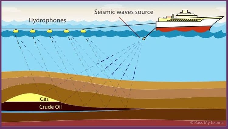 ही झाली जमिनीवरची पद्धत! समुद्रात मात्र थोड्या वेगळ्या पद्धतीचा अवलंब करावा लागतो. एका मोठ्या जहाजात सिस्मिक तरंग सोडणारी यंत्रे बसवली असतात. खोल समुद्रात यंत्रामधून ‘शॉक वेव्हज’ सोडल्या असता, त्या वेव्हज समुद्रखालील तळावरील जमिनीला, दगडांना आपटून परत येतात. ते परत आलेले तरंग यंत्रात पकडून त्यांचे विश्लेषण करून साठा आहे किंवा नाही, आणि असलाच तर तो किती प्रमाणात आहे हे निश्चित केले जाते.