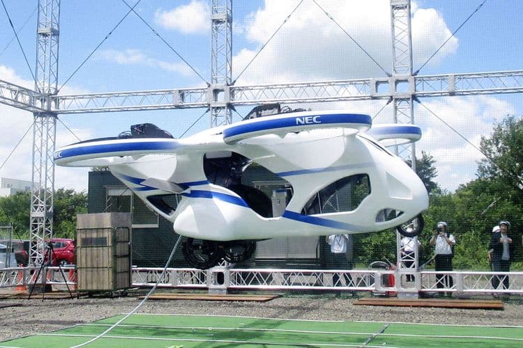 जपान म्हणजे नवनवीन तंत्रज्ञानाचे माहेरघरच. इलेक्ट्रिक आणि इलेक्ट्रॉनिक क्षेत्रातील अनेक घडामोडी इथे घडत असतात. इथल्या अशाच एका कंपनीच्या मनात आले की भूकंप, सुनामी किंवा इतर नैसर्गिक आपत्तीमधून सुखरूप आणि त्वरित बाहेर पडू शकू अशी एक कार बनवावी. मग काय, तंत्रज्ञांची टीम लागली कामाला आणि बनवून टाकली 'द फ्लाईंग कार'. NEC कॉर्पोरेशन ही ती कंपनी.