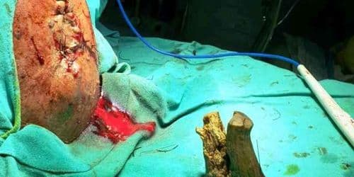 मंडळी, ही बातमी पण खरी आहे आणि तो शेतकरी पण. मध्यप्रदेशमध्ये राहणाऱ्या श्यामलाल यादव या ७४ वर्षांच्या आजोबांच्या डोक्यावर हे शिंग उगवलं होतं. फोटोत दिसत असल्याप्रमाणे हे शिंग वाटत असलं तरी ते खरोखरचं शिंग नाही.