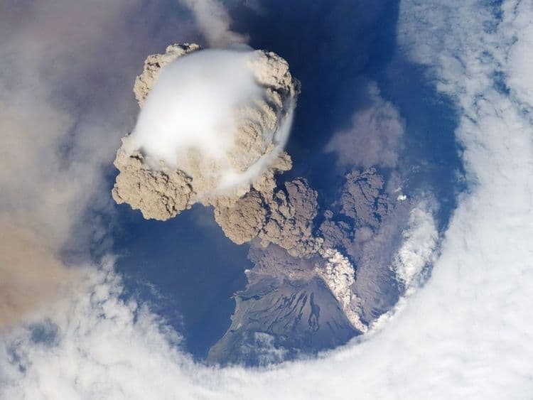 आयएसएसमधल्या काही अंतराळवीरांनी जपानच्या कुरील आयलँड येथे असलेल्या सारीचेव ज्वालामुखीचे आकाशातून फोटो काढले आहेत. या फोटोंची मालिका जवळपास ११ वर्षं आधी २००९ साली काढली गेली होती. हा ज्वालामुखी शिखर कुरील आयलँड साखळीतील सर्वात जास्त जागृत समजला जातो.