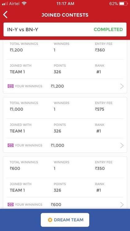 समजा, भारत आणि इंग्लंडचा सामना सुरु आहे. तुम्ही या दोन्ही टीममधून सगळ्यात चांगले ११ प्लेअर निवडता. मग तुमच्या समोर वेगवेगळ्या Contest ठेवल्या जातात आणि त्यातून जिंकणाऱ्याला मोठी रक्कम मिळते. समजा १०,००,००० बक्षीस असलेली स्पर्धा आहे, तर जिंकणाऱ्या ३५,००० लोकांमध्ये हे बक्षीस वाटून दिलं जातं. पण हे एवढं सोपं नसतं. ज्याने आपल्या प्लेअर्सच्या जोरावर सर्वात जास्त पॉइंट्स मिळवले आहेत त्यांना प्राधान्य दिलं जातं. यासाठी सुरुवातीलाच तुमची टीम चांगली असली पाहिजे.