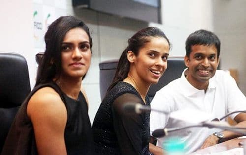 (पी. व्ही. सिंधू, सायना नेहवाल आणि गोपीचंद)
