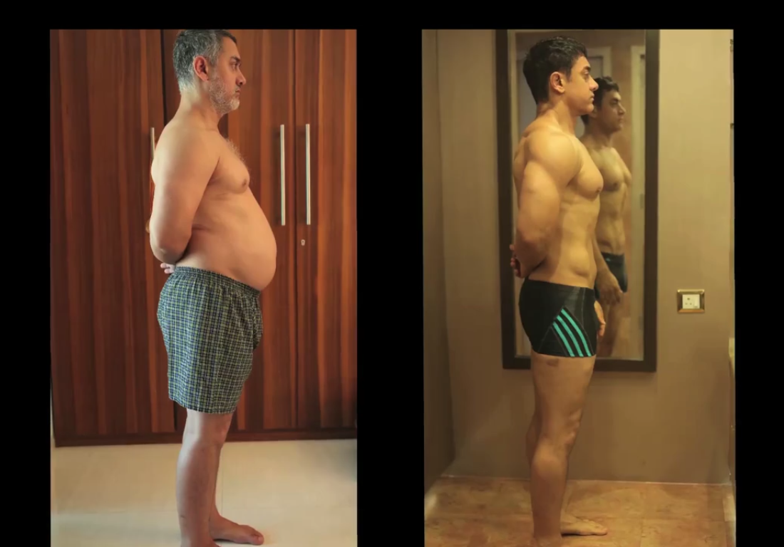आमिर त्याच्या भूमिकांसाठी अतिशय मेहनत घेण्यासाठी प्रसिद्ध आहे. साहजिकच त्यानं जाड होण्यासाठी जाड बॉडीसूट न घालता वजन वाढवलं. पण त्यानं हुशारी ही केली, की महावीरसिंग जाड असतानाच्या प्रसंगांचं शूटिंग आधी करून घेतलं आणि मग त्याच्या बारीक असतानाचे सीन केले. तरीही व्हिडिओ पाहाताना त्याने वजन उतरवण्यासाठी घेतलेली मेहनत खूप आहे हे दिसतंय. इतकंच नाही, तर त्याला हे वजन आणि मुख्य म्हणजे चरबी घटवायला पाच महिने लागले.