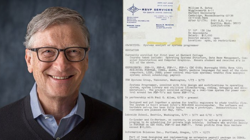 बिल गेट्सचा ५० वर्षांपूर्वीचा रेझ्युमे पाह्यलात का? आताचे CV याहून बरे असतात असं खुद्द बिलचं म्हणणं आहे!!