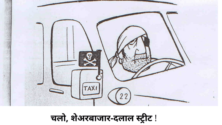 दलाल स्ट्रीट आणि शेअरबाजार म्हटले की मनात आपण लुबाडले तर जाणार नाही ना असा भयगंड मनात असतोच.. हे भय सर्वकालीन आहे. १९५५च्या या व्यंगचित्रात शेअरबाजारात घेऊन जाणारा टॅक्सीवाला कसा दिसत असेल हे सांगणारे हे व्यंगचित्र बघा !