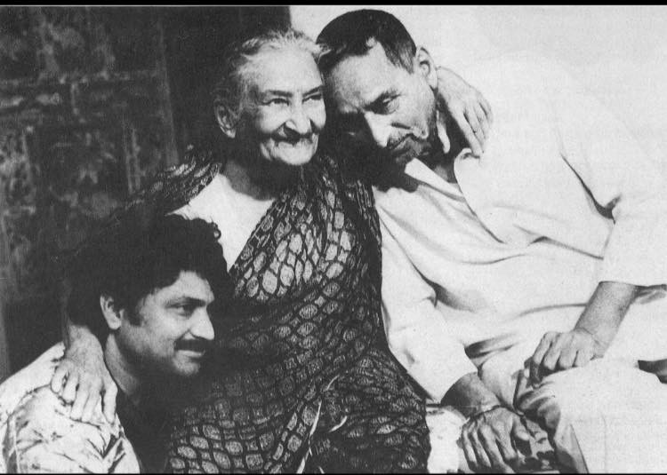 कमलाबाईंसोबत चंद्रकांत गोखले आणि विक्रम गोखले (स्रोत)