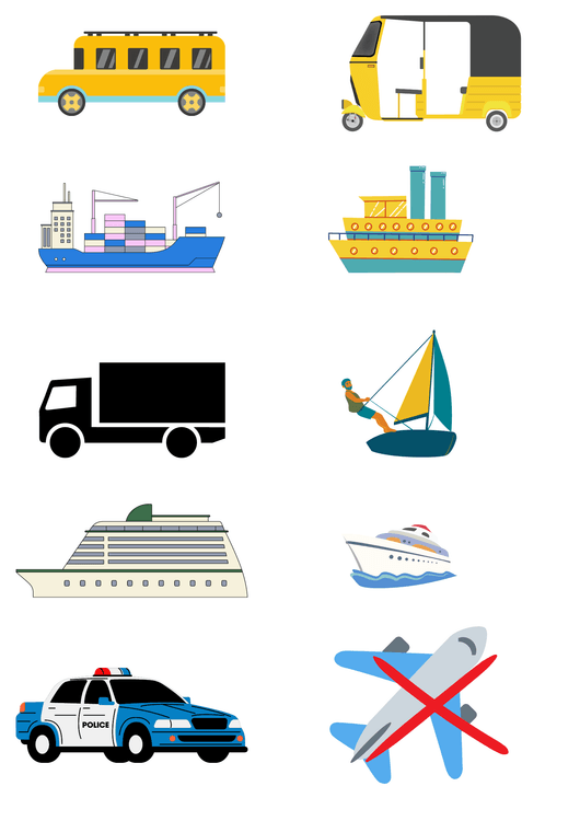 बस- ३५१, ट्रेन्स -१५८,-टुकटुक(रिक्शा) ४३, कंटेनर शिप्स -३७ , बोटी ३३, ट्रक्स ०९,सेलबोट्स ०३,,क्रुझ शिप्स ०२,पोलीस कार ०१याॅट ०१आणि एकदा चक्क घोडागाडी...