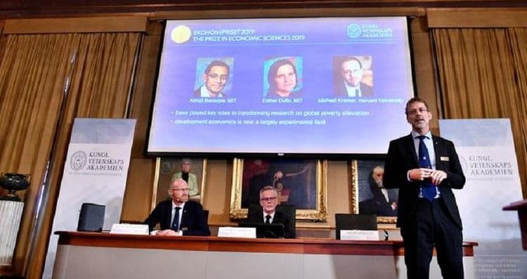 भारतीयांना अभिमान वाटेल अशी एक बातमी काल आली. जगातलं दारिद्र्य कमी करण्यासाठी केलेल्या यशस्वी प्रयोगाबद्द्ल माईकेल क्रेमर, एस्थर डूफ्लो आणि भारताचे अभिजित बॅनर्जी यांना एकत्रितपणे २०१९ चा अर्थशास्त्राचा नोबेल पुरस्कार जाहीर झाला आहे.