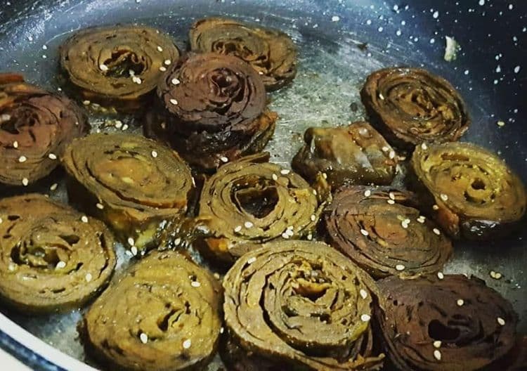 १०. तेल गरम करून एक-एक वडी सोडून छान शॅलो फ्राय करून घ्या. आवडत असल्यास तळत असताना थोडेसे तीळ वरून भुरभुरवा.