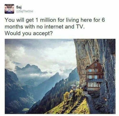 मंडळी, सोशल मिडीयावर अधून मधून एक फोटो फिरत असतो. एक नयनरम्य ठिकाणी घर दाखवलेलं असतं आणि खाली लिहिलेलं असतं “तुम्हाला अमुक अमुक पैसे दिले तर वीज, इंटरनेट शिवाय तुम्ही या ठिकाणी राहू शकाल का ?”....