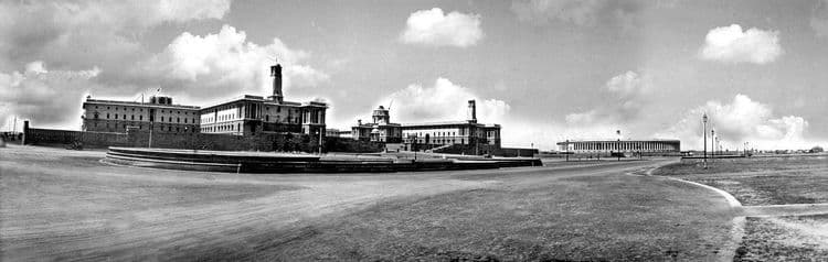 हा पॅनॉरमा फोटो आहे. नॉर्थ ब्लॉक आणि साउथ ब्लॉक सहित उजवीकडच्या कोपऱ्यात संसद भवन तुम्ही बघू शकता. हा परिसर आज एवढा मोकळा राहिलेला नाही.