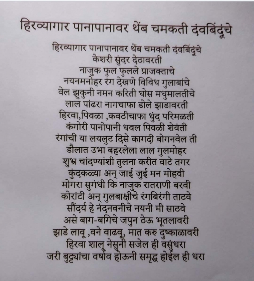 ज्या सदाफुलीला हिंदी भाषेत ' बेशरम' म्हणून हिणवले जाते त्या सदाफुलीला पण या कवितेत स्थान मिळाले आहे. कवि वसंत बापट यांची कविता वाचा आणि ऐकाही.