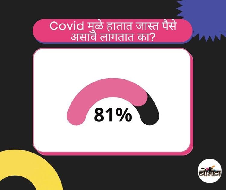 आतापर्यंत कोणीही न अनुभवलेले कोव्हीडचे संकट गेली जवळजवळ दोन वर्षे आपल्या डोक्यावर आहे त्यामुळे हातात पैसे जपून ठेवण्याची गरज ८१% लोकांना वाटते आहे पण गरजेनुसार ते पैसे हातात आहेतच असे फार कमी दिसले.