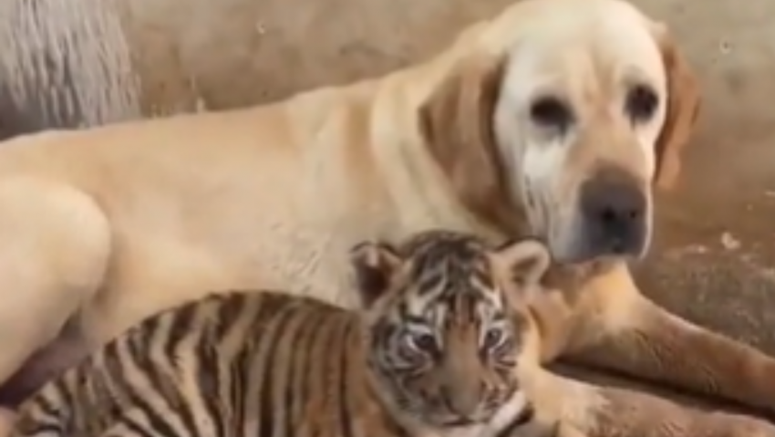 एक लॅब्राडोर जमातीची कुत्री वाघिणीचे तीन बछडे पालनपोषण करून वाढवत असल्याचे समजले. ही गोष्ट तशी चीनमधील आहे. एका वाघिणीने तीन बछड्यांना जन्म दिला आणि जन्म दिल्यावर त्यांना सोडून दिले. एवढेच काय, त्यांना साधे दूध सुद्धा पाजले नाही. अशावेळी ही कुत्री आई बनून धावून गेली आणि तीच आता त्यांची आई झाली आहे.