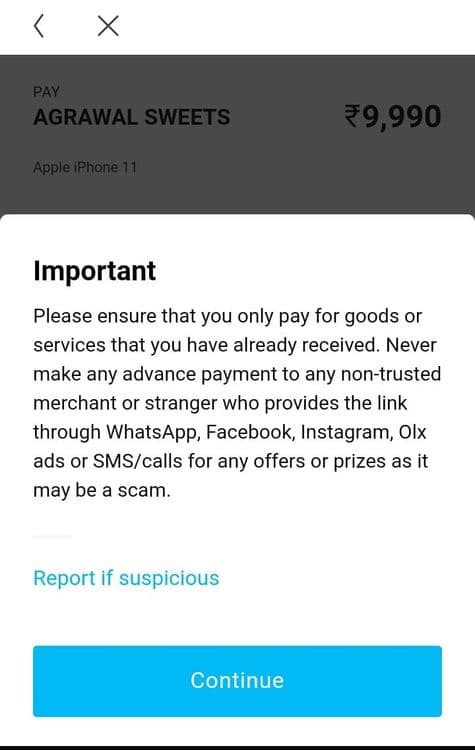 पुढे कार्तिकने बघितलं की जिथे पेमेंटचा पर्याय होता तिथे ‘अग्रवाल स्वीट्स’ लिहिलं होतं. मोबाईल फोन ‘अग्रवाल स्वीट्स’ मधून कसं मिळणार ? कार्तिकच्या घरी काम करणाऱ्या तरुणाला या सगळ्या संशयास्पद गोष्टी दिसूनही त्याला मोबाईल खरेदी करायचा होता. त्याच्याकडे Paytm नसल्यामुळे तो मदतीसाठी कार्तिककडे आला आणि त्याची फसवणूक होता होता वाचला आहे.