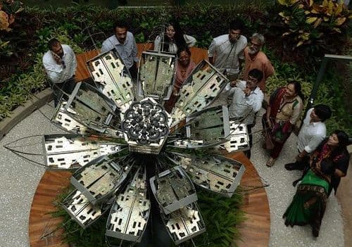 जर्मी मेयर या कॅलिफोर्नियाच्या प्रसिद्ध शिल्पकाराने गोदरेजसाठी हे शिल्प तयार केलंय. यासाठी वापरण्यात आलेले टाईपरायटर हे टाईपरायटरच्या इतिहासतील सर्वात शेवटचे टाईपरायटर्स आहेत. तयार केलेलं शिल्प हे मोठ्या कमळाच्या आकारातील आहे. हे कमळ सकाळी ९ वाजता खुलतं आणि संध्याकाळी काम संपण्याच्या वेळी मिटतं.
