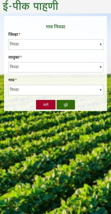 सर्वात आधी तर गुगल प्ले-स्टोरवर जाऊन इ-पीक पाहणी नावाचे ॲप डाउनलोड करून घ्यावे. ॲप उघडल्याबरोबर एक बाणसारखी निशाणी येईल त्यावर डावीकडे सरकवुन 'पुढे' जिथे लिहिले असे तिथे क्लिक करावे. आता आपला मोबाईल क्रमांक टाकावा त्यानंतर तीन रकाने येतील. पहिल्या रकान्यात आपला जिल्हा निवडावा, दुसऱ्या खात्यात तालुका आणि सर्वात शेवटी आपले गाव. यावेळी एका गोष्टीची काळजी घ्यावी ती म्हणजे आपली शेती ज्या गावाच्या शिवारात येत असेल ते गाव निवडावे.