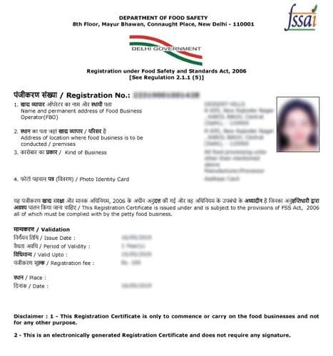 रजिस्ट्रेशन अथवा नोंदणीकरण ऑनलाइन करता येते. त्यासाठी एफसायच्या कार्यालयात जाण्याची आवश्यकता नाही. फूड सेफ्टी ऑफीसर किंवा डेझिग्नेटेड ऑफीसर हे प्रमाणपत्र देतात. त्यासाठी आवश्यक ते कागदपत्र असे आहेत: