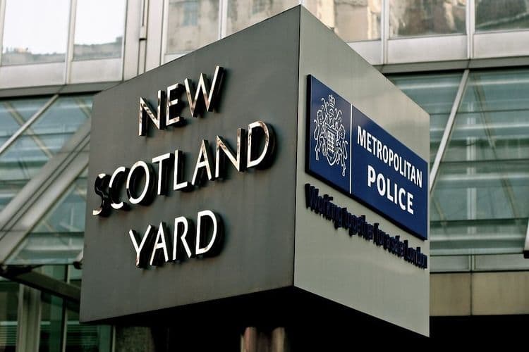 (ब्रॉडवे येथील मेट्रोपोलिटन पोलीस मुख्यालय ज्याला न्यू स्कॉटलंड यार्ड नाव देण्यात आलं होतं.)