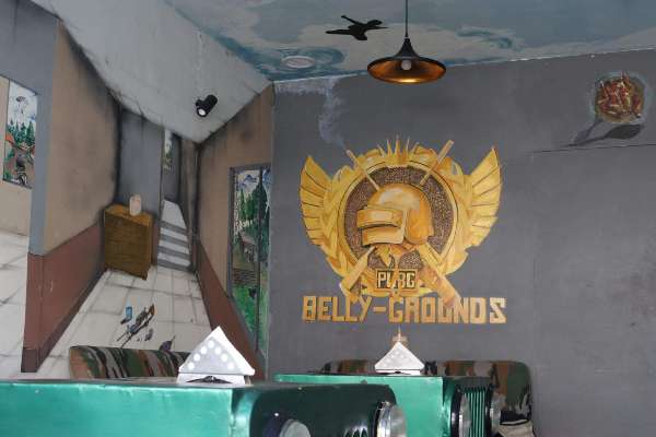 हिरवीगार जमीन, मिलिटरी पद्धतीची बैठक, PUBG स्टाईलने रंगवलेल्या भिंती, इथे ‘सबकुछ PUBG’ असा मामला आहे राव. फक्त एक फरक आहे. PUBG चा अर्थ होतो PlayerUnknown’s BattleGrounds. पण या रेस्टॉरंटच्या नावामध्ये थोडा फरक आहे - Player Unknowns 'Belly' Grounds !!