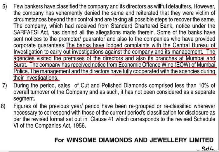 हे होता होता २०१२ साल उजाडलं. कंपनीचं नाव आता विनसम डायमंड झालं होतं. आणि एक दिवस जतीन मेहताने हात वर केले. "मी ज्या तेरा कंपन्यांना माल दिला होता त्या कंपन्यांना मोठे नुकसान झाले आहे. परिणामी मी आता तुमचे पैसे फेडू शकत नाही", हे त्याने जाहीर केले.