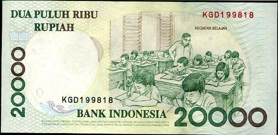 गणपतीला कला, शास्त्र आणि बुद्धीची देवता म्हणून मानलं जातं आणि इंडोनेशियावर जेव्हा डच लोकांच राज्य होतं त्यावेळी की हजर देवान्तर हे शिक्षणाचे आद्यप्रवर्तक होते. या दोन कारणांवरून दोघेही एकत्र नोटेवर दिसतात. नोटेची मागील बाजू बघितल्यास ही बाब खरी असल्याचं आपल्या लक्षात येईल. मागील बाजूस वर्गात शिकत असलेल्या विद्यार्थ्यांचं चित्र आहे.