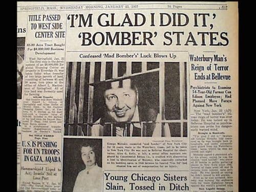 तर ही गोष्ट आहे एका सिरियल किलरची. सुमारे ६०-७० वर्षांपूर्वीची!. हा सिरियल किलर मोकाट सुटला होता. साल १९५६. ब्रूकलीन या न्यूयॉर्कच्या उपनगरात पॅरामाऊंट थिएटर्मध्ये'वॉर अँड पीस'चा शो सुरू होता अन अचानक संध्याकाळी ७.५० वाजता बॉम्बस्फोट झाला. थिएटरमधून धुराचे लोट दिसू लागले. सर्वत्र एकच पळापळ चालू झाली. पॅरामाउंटचा हा बॉम्बस्फोट काही नवीन पद्धतीने झालेला नव्हता. गेल्या १६ वर्षांपासून याआधीसुद्धा अशा प्रकारचे ३२ स्फोट शहरात झाले होते. एकाच व्यक्तीने हातानेच तयार केलेल्या बॉम्बच्या साह्याने थिएटर, भुयारी पादचारी मार्ग, बस स्थानक, रेल्वे स्टेशन अशा या शहरात असणाऱ्या मोक्याच्या असणाऱ्या ठिकाणी तब्बल ३२ बॉम्बस्फोट घडून आणले होते, असा पोलीसांचा कयास होता.