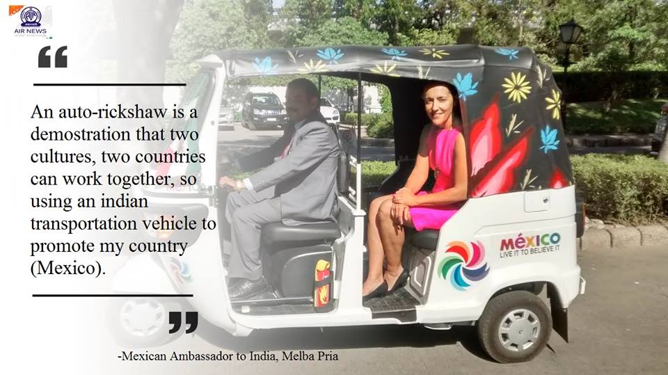 ओला आणि उबरच्या आगमनानंतर रिक्षावाल्यांच्या मुजोर धोरणाला वैतागून बहुतेक भारतीय एसी कारने प्रवास करणं पसंत करत असताना मेक्सिकोच्या भारतातील राजदूत मेल्बा प्रिया दिल्लीत ऑटोरिक्षाने प्रवास करत आहेत. विश्वास बसत नाही ना?