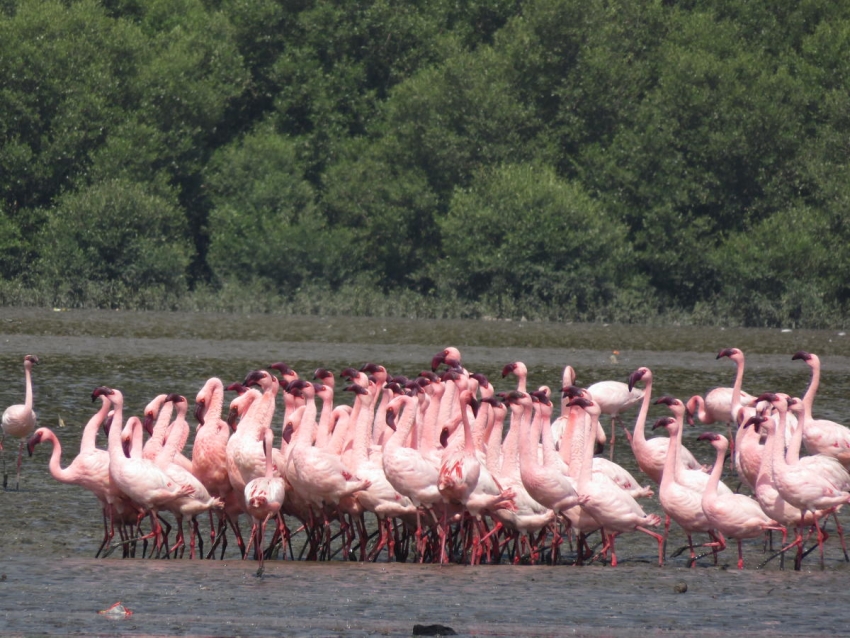या गुलाबी पाण्यामागचं नेमकं कारण अजूनही संशोधकांना माहित नसलं तरी त्यांच्या मते या पाण्याला हा गुलाबी रंग उष्ण हवामानात खारट पाण्यात वाढणाऱ्या लाल रंगाच्या सुक्ष्म शैवाल आणि बुरशीमुळे मिळाला आहे. ही बुरशी दमट वातावरणात पाण्यात रंगद्रव्य निर्माण करते आणि ते या पक्षांना आकर्षित करते. "जगात अनेक ठिकाणी याआधी लाल शैवालांमुळे असा प्रकार दिसला असला तरी मुंबईत हे दृश्य पहिल्यांदाच दिसतंय. फ्लेमिंगो हे झोपलॅनकेटॉन नावाचे पाण्यातील जिवाणू खातात, जे या लाल रंगाच्या बुरशीवर जगतात. त्यामुळे त्यांना लाल आणि गुलाबी रंग प्राप्त होतो." असं BNHS चे संचालक दिपक आपटे सांगतात.