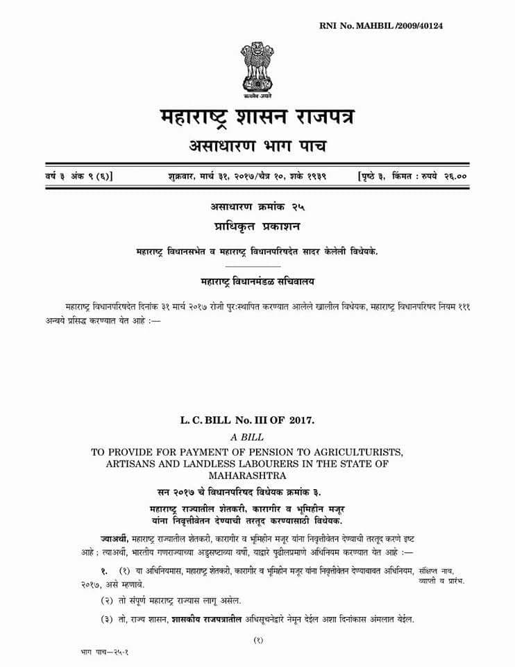 जर सरकारला शेतकऱ्यांच्या पेन्शन संदर्भात हे विधेयक पसंत पडलं तर शेतकऱ्यांना नक्कीच महिन्याला पेन्शन मिळेल. आपण तूर्तास तरी हा कायदा अंमलात आणावा म्हणून फक्त आशाच करू शकतो.