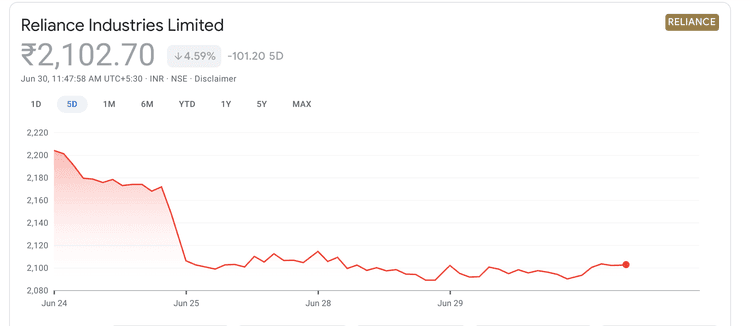 आता शेअर बाजार याचा अर्थ असा घेते की सध्या काही वर्षांसाठी रिलायन्सचा 'पार्टी टाइम' संपला आहे. त्यामुळे ताबडतोब नफ्याच्या शोधात असलेले गुंतवणूकदार शेअर विकत आहेत.