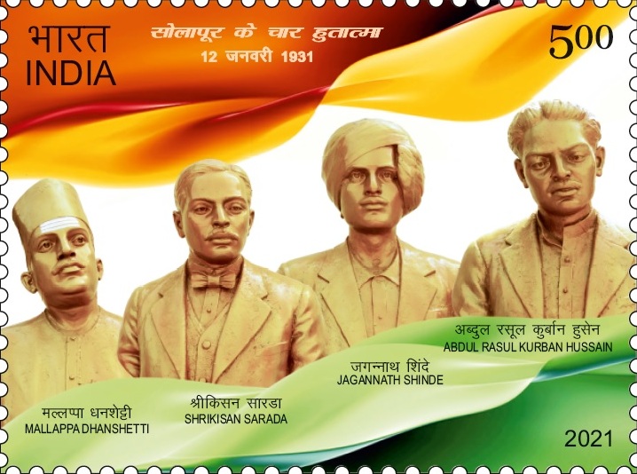 सोलापूर जिल्ह्याला असलेली मोठी ओळख म्हणजे हुतात्म्यांचा जिल्हा!! स्वातंत्र्य चळवळीत केलेल्या कामामुळे मलाप्पा धनशेट्टी, कुर्बान हुसेन, जगन्नाथ शिंदे, किसन सारडा यांना फाशीवर चढविण्यात आले होते. या चार क्रांतिकारकांचा आजही सोलापूरकरांना अभिमान आहे.