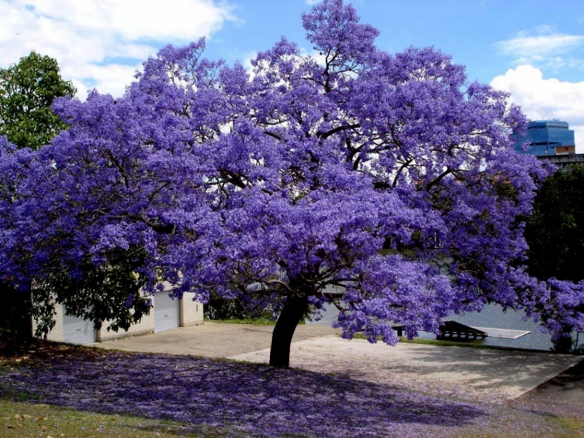 हादेखील गुलमोहोर आणि सोनमोहोराच्याच रांगेतला पण भारतात तितकासा न आढळणारा वृक्ष. त्याच्या निष्पर्ण झाडावर निळ्या रंगाचे घोस भलतेच सुंदर दिसतात.
