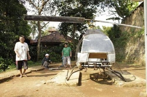 इंडोनेशिया मधील जुजून जुनेदी याने हेलिकॉप्टर बनवले आहे. जकार्तापासून जवळ असलेल्या त्याच्या शहरात ट्रॅफिकची मोठी समस्या निर्माण झाली होती. ट्रॅफिकमध्ये जाणारा वेळ त्याला सतावत होता. म्हणून मग त्याने हेलिकॉप्टर बनवण्याचे ठरवले. यु ट्यूबवर विडिओ पाहून हळूहळू तो शिकायला लागला.