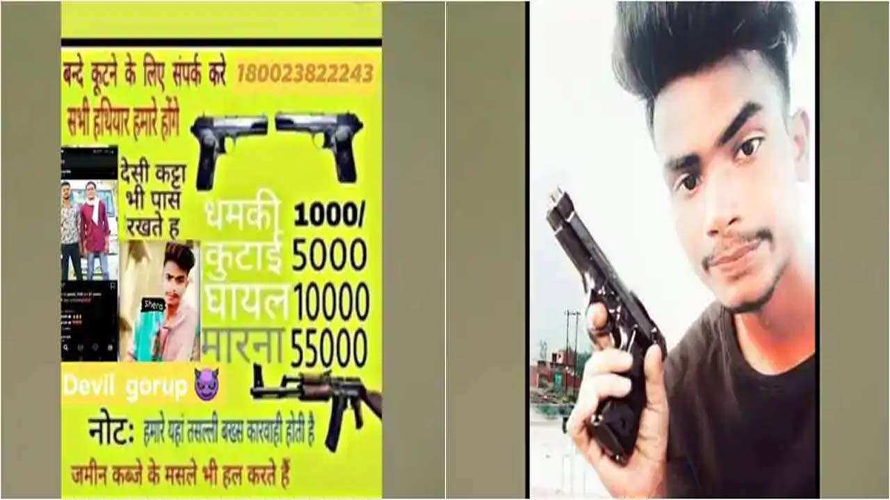 यूपीतील एका तरुणाने पिस्तुल हातात धरून एका बॅनरवर फोटो लावलाय. बॅनरवर त्याने आपल्या बिजनसची जाहिरात केली आहे. हा भाऊ विविध प्रकारची सर्व्हिस देतो, या सर्व्हीसचे चार्जेस त्याने पोस्टरवर लिहिले आहेत. या पोस्टरवर असलेल्या सर्व्हीस आणि त्यांचे चार्जेस खालीलप्रमाणे.