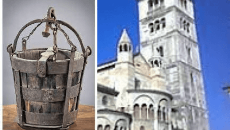हे अनोखे युद्ध होऊन आता तशी ८०० वर्षं होऊन गेली आहेत. पण आजही हे युद्ध त्याच्या आगळ्यावेगळ्या कारणामुळे चर्चेत असते. तो काळ असा होता जेव्हा इटलीमध्ये धार्मिक तणाव शिगेला पोहोचला होता. त्याठिकाणी दोन राज्यं होती, एक म्हणजे बॉलोग्ना आणि दुसरे मोडेना. बॉलोग्नाला समर्थन होते ख्रिस्त धर्मगुरू पोप यांचे, तर मोडेनाला समर्थन होते रोमन सम्राटाचे. बॉलोग्नाच्या लोकांसाठी पोप श्रेष्ठ होते आणि मोडेनाकरांसाठी रोमन सम्राट श्रेष्ठ होता.