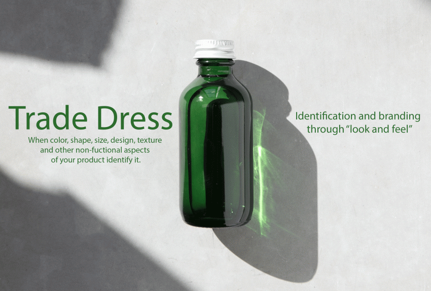ट्रेड ड्रेसमध्ये अगदी कोणत्याही बाह्यरूपाची नोंदणी करता येते. उदाहरणार्थ, बाटलीचे डिझाईन, शोरूमचे डिझाईन, कारच्या समोरच्या ग्रीलचे डिझाईन, इत्यादी.