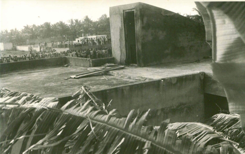 (हरिबाबू या २२ वर्षांच्या फ्रीलान्स फोटोग्राफरने घेतलेला हा फोटो आहे. तो या स्फोटात मरण पावला. हा फोटो तपासात एक महत्त्वाचा दुवा ठरला. फोटोतली भगव्या रंगाच्या कपड्यातली बाई धनु आहे, शेजारी लता कन्नन आणि तिची १५ वर्षांची मुलगी आहे. शिवराजन नावाचे पत्रकार उभे आहेत.)