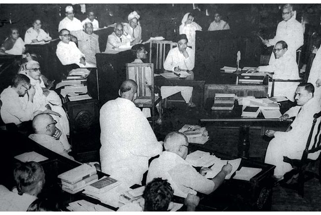 मंडळी, ९ डिसेंबर, १९४६ पासून संविधान लिहिण्याचं काम सुरु झालं. सुरुवातीला संविधान समितीचे अध्यक्ष होते सच्चिदानंद सिन्हा मग पुढे ११ डिसेंबर, १९४६ साली डॉ. राजेंद्रप्रसाद समितीचे अध्यक्ष झाले. या समितीत १९ उपसमित्या होत्या तर २९९ (९ महिला) सदस्य होते. त्यातील महत्वाच्या अशा मसुदा समितीचे अध्यक्ष होते डॉ. बाबासाहेब आंबेडकर.