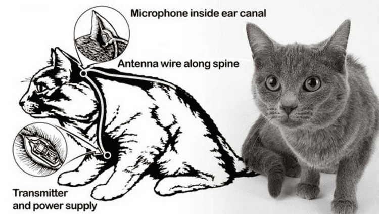 १९६०च्या दरम्यान अमेरिका आणि रशिया यांचे शीतयुध्द जोरात होते.अमेरिकेतल्या रशियन वकीलातीतल्या नोकरशाहीवर आणि इतर रशियन लोकांवर लक्ष ठेवायच्या नवनव्या युक्त्या केल्या जायच्या.असाच एक गंमतीदार प्रयोग म्हणजे ऑपरेशन अॅकॉस्टिक किटी (Operation Acoustic Kitty).या प्रयोगात शत्रूंवर लक्ष ठेवण्यासाठी चक्क मांजरीचा वापर करण्यात आला होता. १९६७ सालच्या "Views of Trained Cats" नावाच्या एका सरकारी कागदपत्रात या 'मांजर' प्रयोगाचा उल्लेख आहे.