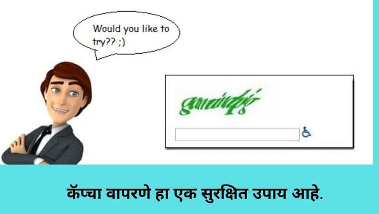 १२. CAPTCHA कॅप्चा वापरणे हा आणखी एक सुरक्षित उपाय आहे. एखाद्या अनोळखी व्यक्तीला ज्याला तुमचं अकाउंट ऍक्सेस करायचं आहे त्याला तुमच्या अकाउंटमध्ये प्रवेश करण्यापासून रोखण्यासाठी CAPTCHA कोड विचारला जातो. गुगल आता नवीन CAPTCHA वापरतात. ज्यामध्ये केलेली विनंती ही माणसाकडून केली जात आहे की संगणक बॉट काही छेडखानी करतोय हे सहज समजते.