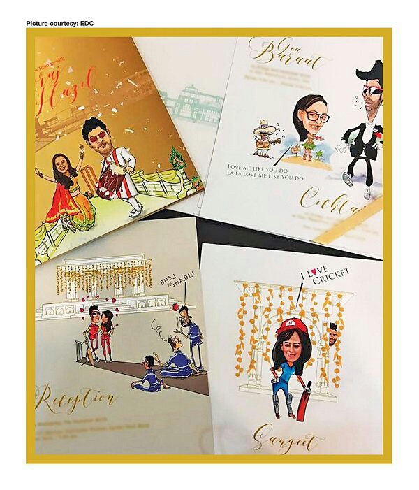 युवराज आणि हेझलला आपलं लग्न अविस्मरणीय बनवायचं आहे. (तशी तर ही इच्छा प्रत्येकाची असते म्हणा.) त्यामुळे त्यांनी आपली लग्नपत्रिका खास”क्रिकेट थीम’वर डिझाईन करून घेतली आहे. या लग्नपत्रिकेचं नाव आहे 'युवराज अॅण्ड हेझल प्रिमियर लीग'. या मजेदार वेडिंग कार्डमध्ये क्रिकेट थीमवर आधारित युवराज आणि हेझलची कार्टून्स तुम्हाला दिसतील. या स्पेशल गोल्ड एंम्बॉसींग केलेल्या लग्नपत्रिकांच डिझाईन सँडी आणि कपिल खुराणा या डिझायनर्सनी केलं आहे. एकंदरीत संपूर्ण लग्नाची थीमच 'क्रिकेट' असल्याने या लग्नसमारंभाचा थाट काही वेगळाच असणार हे नक्की...