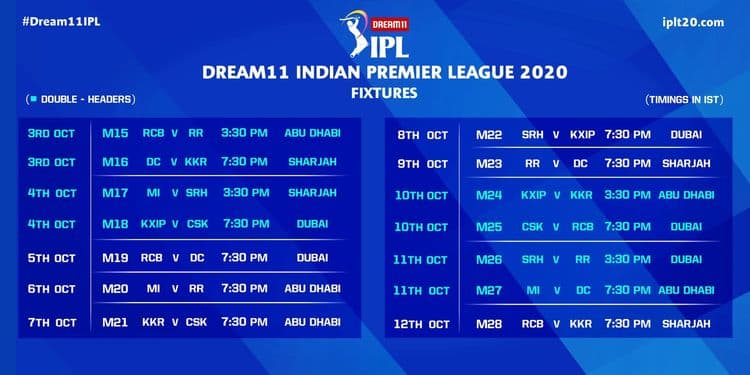 सर्वांचे लक्ष लागून असलेल्या ड्रीम 11 आयपीएल २०२० च्या वेळापत्रकाची शेवटी घोषणा झाली आहे. कोरोनामुळे यंदा युनायटेड अरब अमिरातीमध्ये प्रेक्षकांशिवाय होणारी ही पहिलीच स्पर्धा!! २०१४ नंतर दुसऱ्यांदा यूएईत या स्पर्धा भरविण्यात येत आहेत. १९ सप्टेंबर रोजी अबूधाबी येथे मुंबई आणि चेन्नईमधील धमाकेदार सामन्याने स्पर्धेला सुरूवात होणार आहे. भारतीय वेळेनुसार संध्याकाळी ७:३० वाजेला स्पर्धेला सुरुवात होईल.