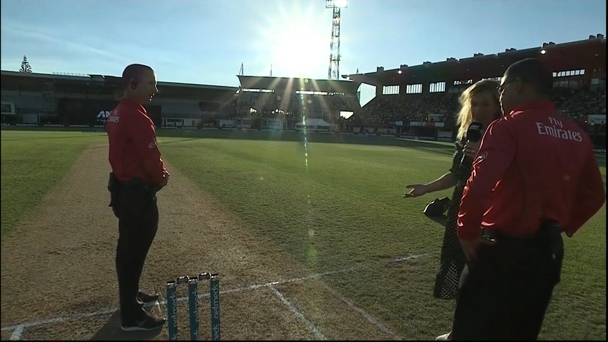 After Dessert storm, snow, fried calamari, cars and dogs stopping play, it's now time for the sun to strike. The "Sun" well and truly has it's place under the sun.#NZvIND